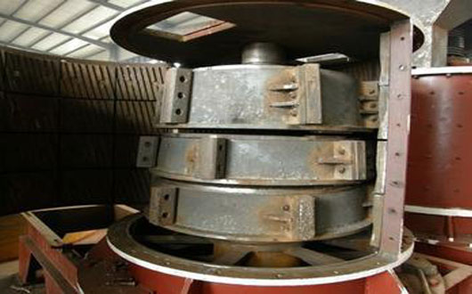 塊狀礦石由進料斗落入上破碎腔內上甩料盤上,借助甩料盤的離心力將物料拋向筒體的內壁,與安裝在內壁上的反擊板猛烈碰撞,同時物料互相撞擊,使之破碎或產生大量發絲裂紋,接著物料進入錐形轉子腔后,在錐形空間呈螺旋狀下落,經沖壓、擠壓,使已有裂紋的礦石進一步被破碎。由于錐形轉子與襯板間的斜度,促使較小的物料向下遷移,達到由大到小自動實現分級破碎。物料在錐形轉子腔內受錘頭的打擊,高速運行塊料再次與反擊板碰撞、物料流相互碰撞使物料經打擊、撞擊、剪切、擠壓面粉碎,從而提高破碎效率。